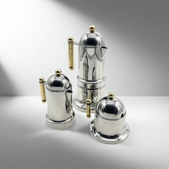 Italian Kontessa Vintage Coffee Set - Stainless Steel & Gold Finish