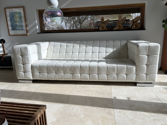 Stap binnen in een wereld van verfijning met deze prachtige witte leren bank, ontworpen door Jan de Bouvrie. De strakke, moderne lijnen en luxueuze lederen bekleding maken het tot een ideaal middelpunt voor elke eigentijdse woonruimte. Deze bank combineert stijl en comfort perfect en nodigt u uit om te ontspannen en gasten te ontvangen.