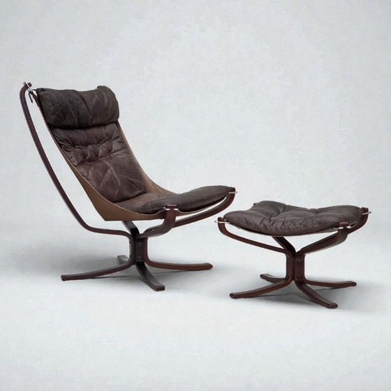 Jaren 70, Noors ontwerp van Sigurd Ressel, loungestoel met voetenbank, model "Falcon".