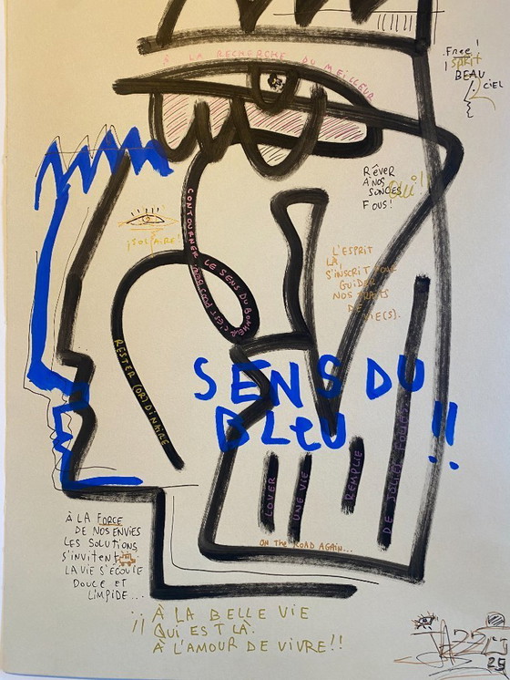 Jazzu Gevoel voor blauw Het leven is mooi Acryl op stevig papier 2025 Gesigneerd, gedateerd en getiteld 2025 490 euro