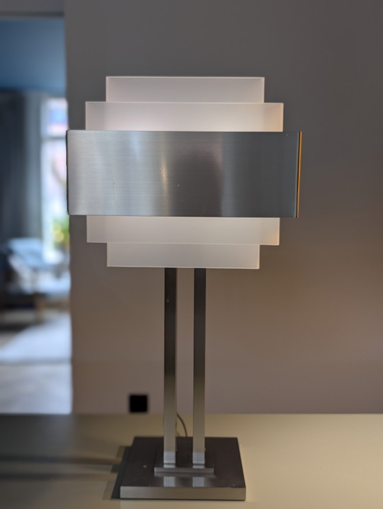 Voor de fijnproever en verzamelaar van Haute Couture verlichting: een uiterst zeldzame kans om eigenaar te worden van een designicoon. Dit is de 944 GM (Grand Modèle) tafellamp, ontworpen door het legendarische Ateliers Jean Perzel uit Parijs. Het betreft een zeldzaam origineel exemplaar uit de allereerste serie met het vroege serienummer 124.