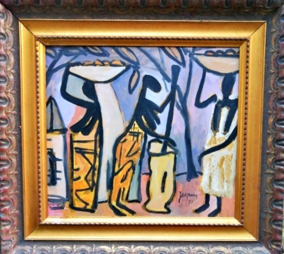 Jespers "" African scene "" olieverf op paneel 54 x 48 met lijst 80 x 74 cm