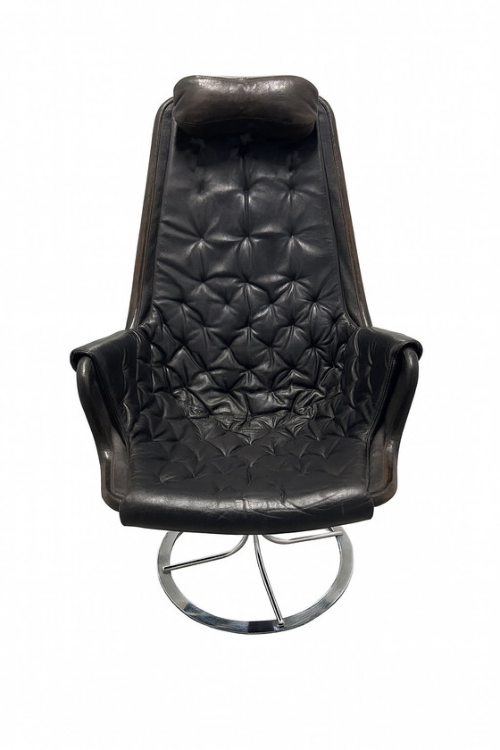 A black leather “Jetson” armchair by Bruno Mathsson for DUX. Design 1969, Sweden. Sturdy, turns well and sits comfortably. Slight signs of use on the leather but otherwise in beautiful vintage condition.