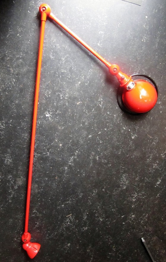 Deze lamp komt uit de Loft-collectie ,maar de arm van 120 cm kom je minder vaak tegen, zo ook de rode kleur