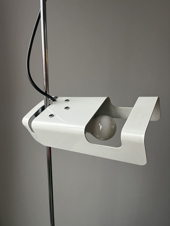 Ter overname aangeboden: een prachtig en authentiek exemplaar van de Joe Colombo "Spider" vloerlamp (model 3319), ontworpen in 1965 voor Oluce. Dit specifieke exemplaar dateert uit de jaren '70/'80 en is een absolute icoon van Italiaans mid-century modern design.