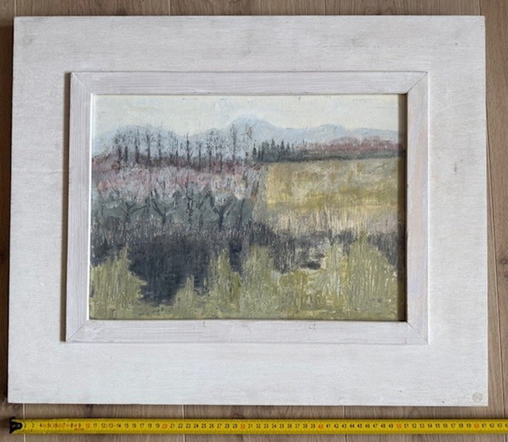 Ontdek de serene schoonheid van de Provence met dit prachtige olieverfschilderij op hout, gemaakt in 1988 door Joke Reynders (1936). Dit kunstwerk vangt de rustieke charme van het Franse landschap met een subtiele mix van grijsgroene en bruine tinten, die de natuurlijke pracht van de regio weerspiegelen.