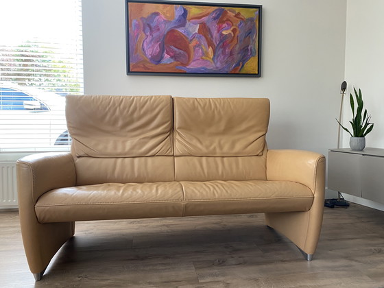 Prachtige originele Jori bank, bekleed met hoogwaardig licht cognac leer. Comfortabele zit met verstelbare hoge rugleuningen. Volledig leren bekleding, geen scheuren of vlekken.
