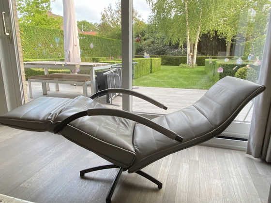 Relaxzetel van het high end designmerk Jori. Medi model/ mono move (voetensteun/ rugleuning synchroom verstelbaar) met reepjes.