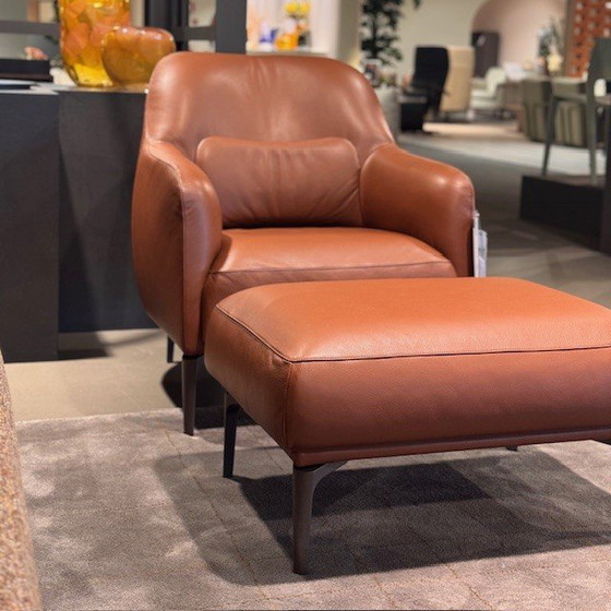 Jori Obession fauteuil met poef – Elegantie en comfort in één. De Fauteuil Obsession van Jori is de perfecte keuze voor wie op zoek is naar luxe, comfort en een verfijnde uitstraling. Deze fauteuil, gecombineerd met een praktische poef, biedt een ultiem zitcomfort in een stijlvolle setting. De bekleding van leder Lipano Castagne geeft de fauteuil een rijke, tijdloze look, terwijl de poten in Brons zorgen voor een subtiele maar krachtige accent. Of je nu een boek leest of gewoon ontspant, de fauteuil Obsession biedt je de ideale plek om te genieten van rust en luxe. De poef is het perfecte verlengstuk voor extra comfort en veelzijdigheid in je woonkamer. Afmetingen Fauteuil: Breedte: 80 cm Diepte: 90 cm Hoogte: 90 cm Afmetingen Poef: Breedte: 55 cm Diepte: 55 cm Hoogte: 40 cm Kies voor de Fauteuil Obsession van Jori en maak van je interieur een statement van stijl en vakmanschap.