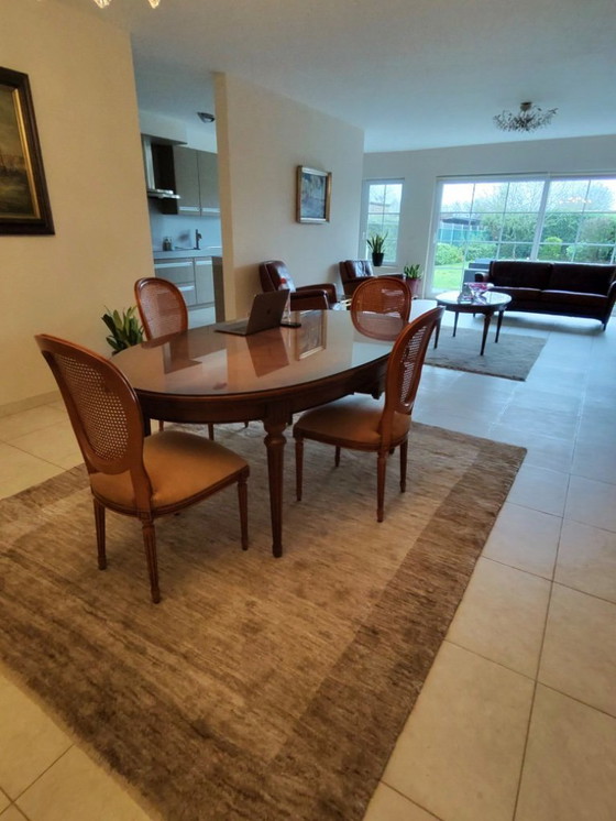 • 4 bijpassende Louis XVI stoelen met rotan rugleuningen