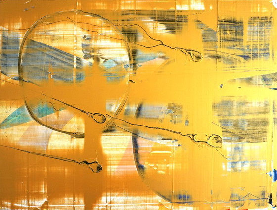 Abstract schilderij op hout van de Oostenrijkse kunstenaar Jürgen Angeler. Geschilderd met hoog gepigmenteerde acrylverf.