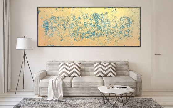 Abstract schilderij op spieraam van de Oostenrijkse kunstenaar Jürgen Angeler. Geschilderd met sterk gepigmenteerde acrylverf. Sterk, robuust en kreukbestendig canvas van galeriekwaliteit (300 g/m²).