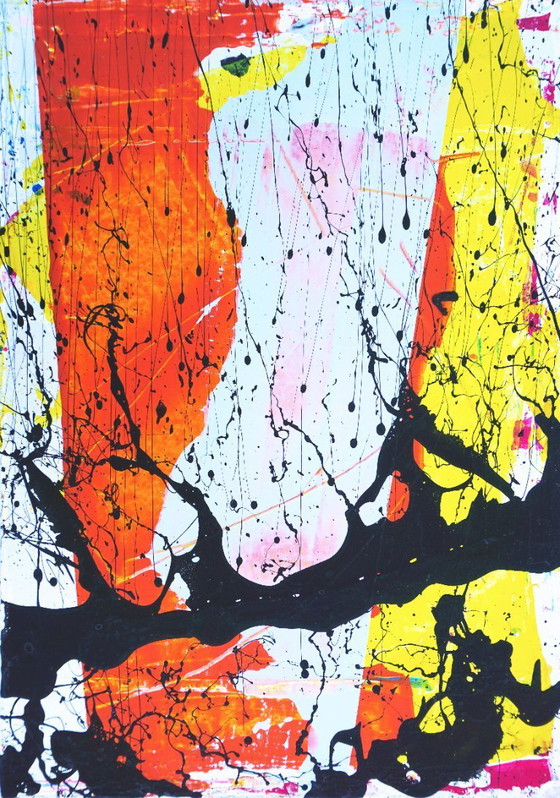 Abstract schilderij op karton van de Oostenrijkse kunstenaar Jürgen Angeler. Geschilderd met hoog gepigmenteerde acrylverf.