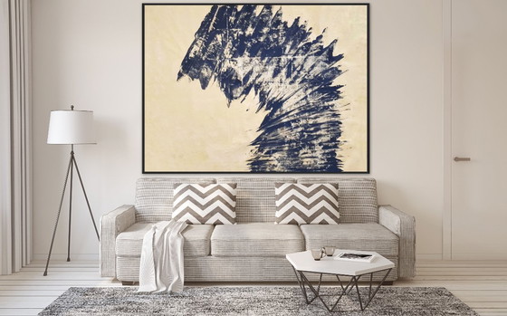 Het schilderij meet 115 x 150 cm en heeft aan elke zijde de nodige marges om het op een spieraam van 100 x 140 cm te spannen. Geschikte spieraamdiepte: 2-5 cm.