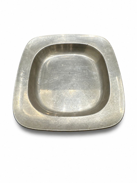 Een elegant vierkant dienblad van massief tin, ontworpen door de gerenommeerde Deense ontwerper Just Andersen (1884-1943). Dit model (2571) is een icoon van Scandinavisch minimalisme, bewonderd om zijn pure lijnen en materiaalkracht.