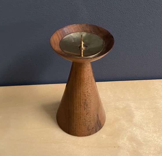 Image 1 of Kandelaar van teakhout en messing, jaren 70.