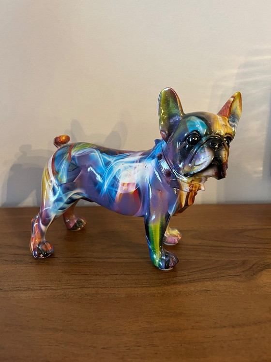Voeg een vleugje kleur en karakter toe aan je interieur met deze charmante bulldog! Aarzel niet om hem in huis te halen en geniet van zijn vrolijke aanwezigheid.