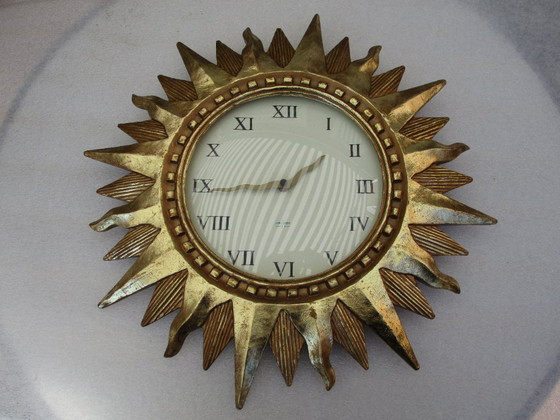 Karlsson Zonneklok vergulde 22k goud zware wandklok uit eind 20e eeuw werkt prima.