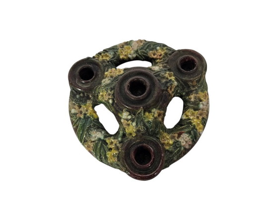 Conditie: Uitstekende staat - nauwelijks gebruikt met minimale gebruikssporen en tekenen van ouderdom - minimale chip aan de zijnkant verder gaaf. (Kaars ter decoratie, wordt niet meegeleverd) . Fraai gedecoreerde kandelaar voor in totaal 5 kaarsen