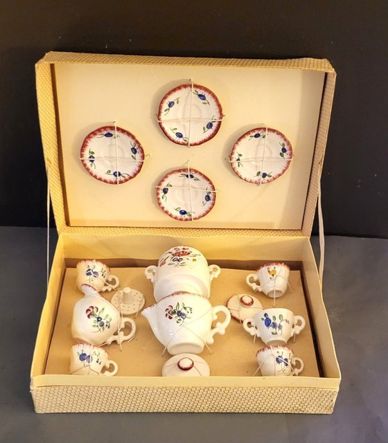 Kindertheeservies (speelgoed) van Longchamp aardewerk (Frankrijk)