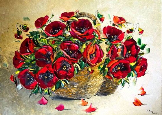 Origineel bloemenschilderij met textuur van een Poolse kunstenaar
