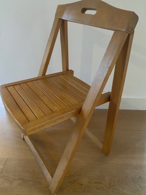 Deze vintage klapstoel van beukenhout is een praktische en stijlvolle toevoeging aan elk interieur. Het warme bruine hout straalt een tijdloze charme uit en is perfect voor zowel binnen als buiten gebruik. De stoel is eenvoudig op te vouwen en op te bergen, ideaal voor extra zitplaatsen wanneer nodig.