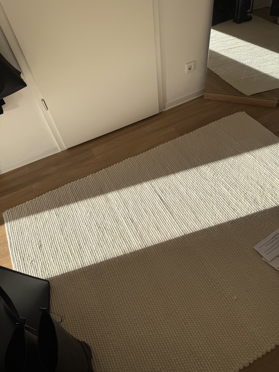 Conditie: Het tapijt is ongeveer 2,5 jaar oud en is slechts aan één kant gebruikt. Omdat het omkeerbaar is, is de andere kant in uitstekende staat. Het tapijt is over het algemeen in goede staat, maar heeft een paar kleine gebruikssporen, zoals wrijfplekken en vlekjes. (Zie foto's!)