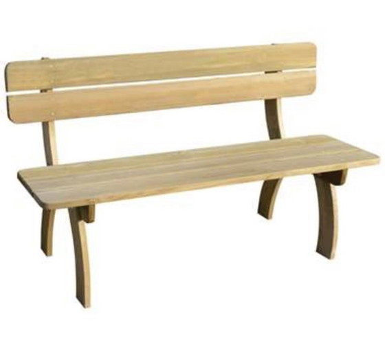 Dankzij het groene geïmpregneerde grenenhout is onze houten tuinbank erg stevig, duurzaam en rotbestendig.