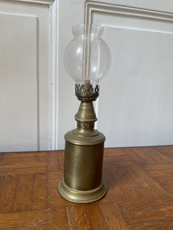 Deze kleine vintage olielamp is gemaakt van messing en heeft een heldere glazen schoorsteen. Het is een charmant stuk van het merk 'Le Pigeon', dat bekend staat om zijn kwaliteitsvakmanschap. Het ontwerp van de lamp is zowel functioneel als decoratief, waardoor het een perfecte aanvulling is op elke vintage of klassieke inrichting. Dankzij het compacte formaat past hij gemakkelijk op een tafel of plank en voegt hij een vleugje elegantie en geschiedenis toe aan je ruimte.