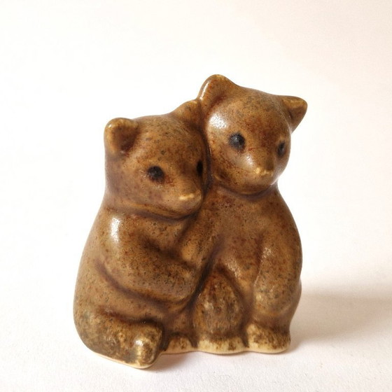 Prachtig vormgegeven beeldje svan 2 jonge beertjes met bruin glazuur.