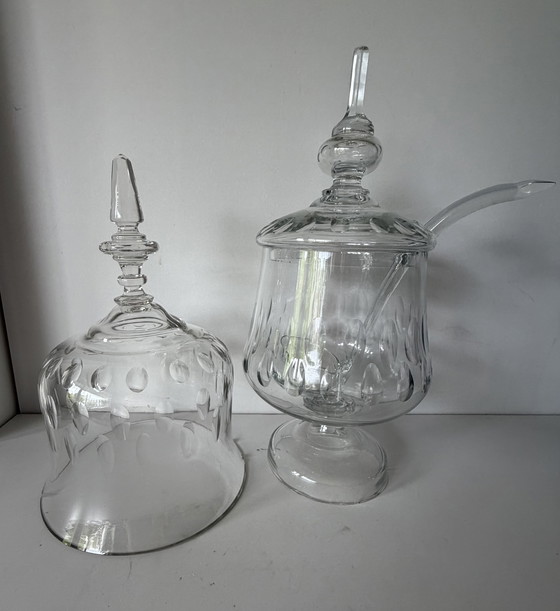 Deze elegante kristallen bowlpot en kaasstolp voegen een vleugje verfijning toe aan elke tafelsetting. Het heldere kristal vangt het licht prachtig op, waardoor een schitterend effect ontstaat dat de aandacht trekt.