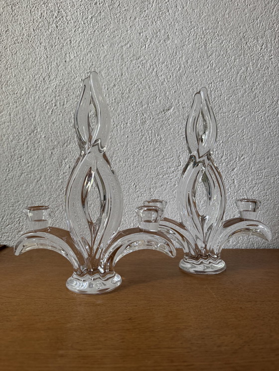Prachtig paar Vannes kristallen kandelaars (gestempeld) uit de jaren 60/70; uitstekende staat