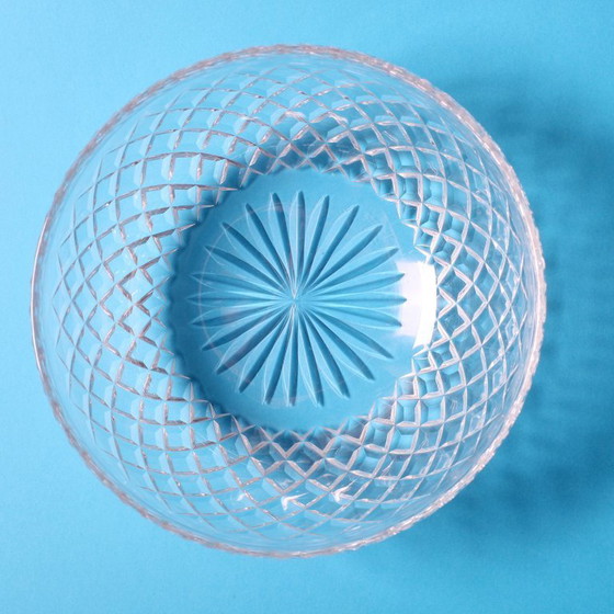 Kristallen mid-century middenstuk, vintage heldere glazen fruit- of saladeschaal / Florence / Italië / jaren 60