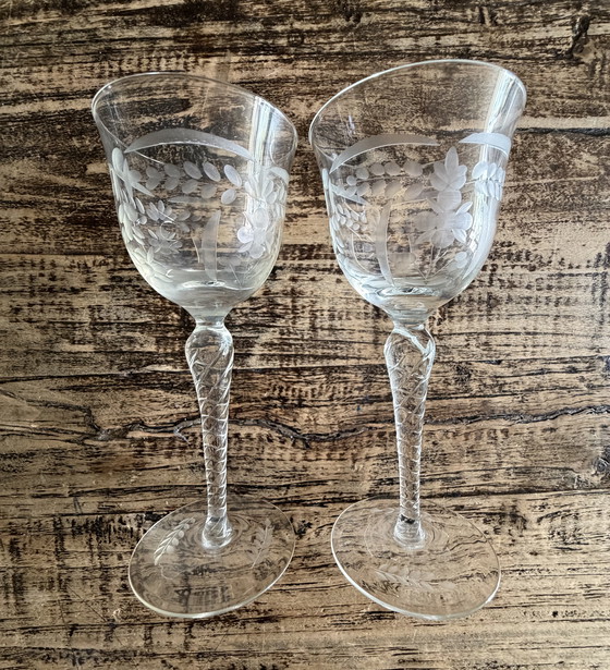 Deze prachtige kristallen wijnglazen zijn een verfijnde toevoeging aan elke tafelsetting. Met hun elegante bloemfontein en guirlandes gravures stralen ze een tijdloze charme uit die perfect past bij een klassieke inrichting.