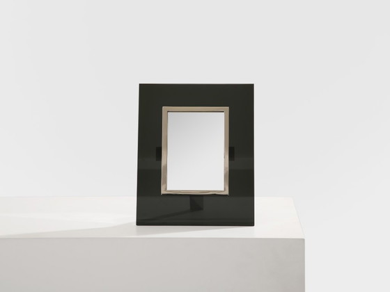 La Maison Desny Art Deco nikkelmetalen opaalglazen tafelspiegel uit de jaren 1930