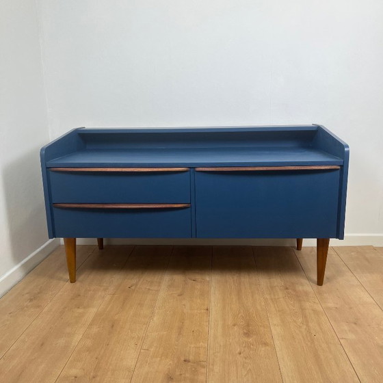 Laag dressoir/tv-meubel in middernachtblauw en hout, 1960