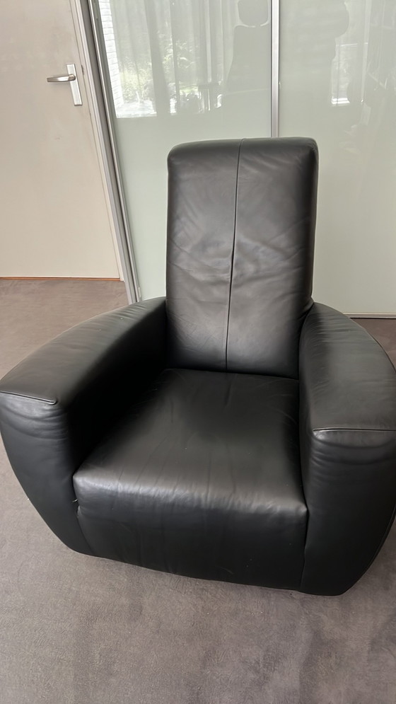 Dit is een Label Longa fauteuil ontworpen door Gerard van den Berg, met een strak modern ontwerp. De stoel is bekleed met hoogwaardig zwart leer en biedt zowel comfort als stijl. De robuuste constructie en het tijdloze ontwerp maken de fauteuil een perfecte aanvulling voor elke hedendaagse woonruimte. De fauteuil is in goede staat met minimale gebruikssporen, waardoor hij jarenlang een duurzaam en stijlvol stuk zal blijven.