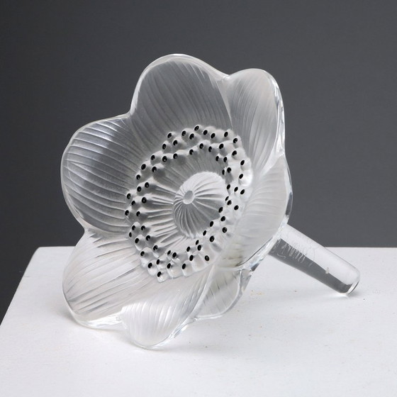 Anemoon in helder, mat en geëmailleerd glas. Gegraveerd signatuur "Lalique France" op de steel en fabriekssticker.