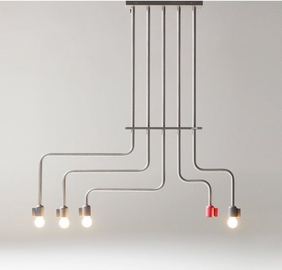 Lande Refinery industriële designlamp – met geïntegreerd stopcontact Vanwege een verbouwing bieden wij deze bijzondere Lande Refinery hanglamp te koop aan. Een echte blikvanger met een stoere, industriële uitstraling en slimme functionaliteit. ✔ Bekroond ontwerp: Ontwerper Ernst Koning won met deze lamp de IF Concept Design Award 2012 ✔ Uniek en flexibel: De vijf buisarmen zijn afzonderlijk beweegbaar, zodat je het licht precies kunt richten waar je het nodig hebt. ✔ Geïntegreerd stopcontact: Geen rondslingerende snoeren meer – in een van de buizen zit een handig stopcontact verwerkt. Ideaal voor werkplekken of tafels waar meerdere mensen samenkomen. ✔ Tijdloos industrieel design: Geïnspireerd op olieraffinaderijen, waardoor deze lamp perfect past in moderne en robuuste interieurs. Kortom, een functionele en stijlvolle lamp die niet alleen mooi, maar ook praktisch is! Interesse? Stuur een bericht voor meer informatie. Nieuwprijs: 1.500,-