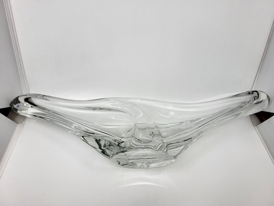 De Daum sculpturale beker, emblematisch voor de kunst van het Franse kristal, belichaamt zowel de elegantie als de savoir-faire van het prestigieuze huis Daum, opgericht in Nancy. Dit unieke stuk, ontworpen in de jaren 1950, onderstreept niet alleen de uitmuntendheid van het vakmanschap, maar ook de historische impact van dit huis op het wereldtoneel dankzij de Wereldtentoonstelling van 1900, waar het onbetwiste roem verwierf door de Grand Prix te winnen. Met zijn langwerpige vorm en delicaat afgeronde uiteinden springt deze transparante kristallen schaal zeker in het oog. Met zijn indrukwekkende afmetingen van 62 cm lang en 15 cm breed is het een meesterwerk dat net zo goed tot zijn recht komt op een elegant gedekte tafel als in een vitrinekast gewijd aan kunst. De schittering van het zorgvuldig bewerkte kristal weerkaatst het licht op spectaculaire wijze en creëert een spel van reflecties dat elke toeschouwer betovert. De schaal heeft een paar krassen door gebruik, die het verstrijken van de tijd en zijn geschiedenis weerspiegelen. Deze imperfecties doen niets af aan zijn schoonheid en karakter, integendeel, ze geven hem een echt patina dat zijn authenticiteit en erfgoed onderstreept. Elke lichtinval op het gladde oppervlak onthult de nuances van het ontwerp en de expertise van de ambachtslieden die dit meesterwerk hebben gemaakt. De met diamanten bezette handtekening "Daum France" is een garantie voor kwaliteit en authenticiteit. Het is een herinnering aan het prestige van het bedrijf, dat bekend staat om zijn creativiteit en uitmuntendheid. Daum heeft altijd voorop gelopen op het gebied van innovatie in kristal en deze bokaal is daar een perfect voorbeeld van. Het sculpturale ontwerp, dat durf en verfijning combineert, getuigt van een tijdperk waarin vakmanschap en luxe harmonieus samengingen en de weg vrijmaakten voor een nieuwe esthetiek. Een sculpturale beker als deze bezitten is een stukje geschiedenis bezitten, een tijdcapsule die het uitzonderlijke vakmanschap en culturele erfgoed van Frankrijk oproept. Het is een werk dat niet alleen kunstliefhebbers zal aanspreken, maar ook het gesprek van de dag zal zijn tijdens verfijnde diners of privétentoonstellingen, waar het de aandacht en nieuwsgierigheid van de gasten zal trekken. Kortom, de gebeeldhouwde beker van Daum de Nancy is veel meer dan een eenvoudig decoratief object; het is een kunstwerk dat een verhaal vertelt, het verhaal van zijn makers, van zijn tijdperk en van de tijdloze schoonheid van kristal. Of je nu een verzamelaar bent of gewoon gepassioneerd door kunst, dit stuk is een must-have die onze volledige bewondering verdient.