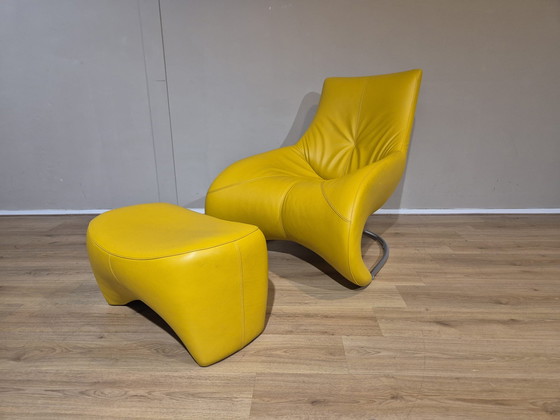 Leolux Darius Fauteuil + Hocker - Geel - Leder - Nieuwstaat