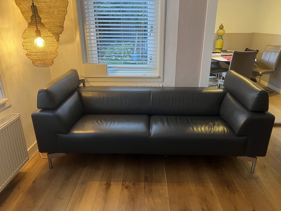 Mooie donkergrijze leren Leolux bank. Geen beschadigingen en/of verkleuringen. Enkel wat kleine plooitjes bij het zitgedeelte.