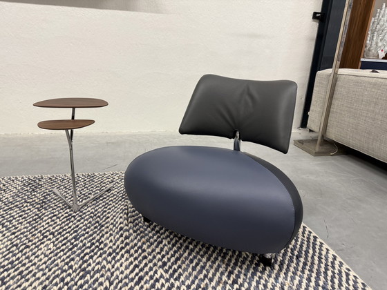 Nieuw Leolux Pallone fauteuil uitgevoerd in Senso leder in de kleuren blauw & grijs. Afmetingen L86xD84xH73 ZH41cm. Nieuwprijs €2305. Nu scherp te koop voor €1299.