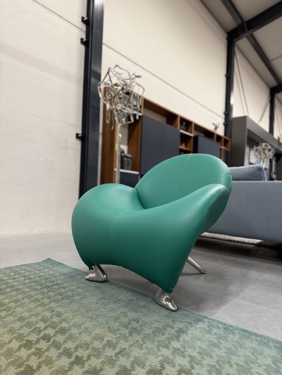 Nieuw leolux papageno fauteuil uitgevoerd in senso leder in de kleur Lagoon, met aluminium onderstel. Afm l91xd82xh80 zh40cm