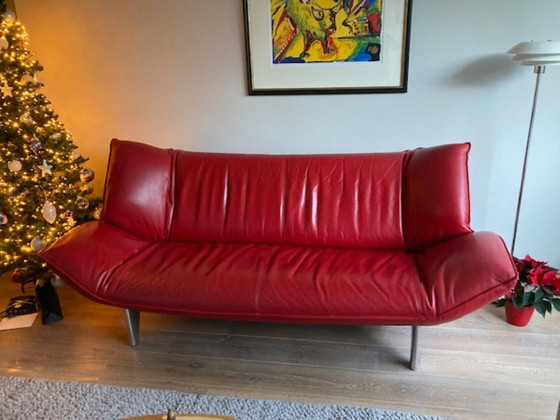 Leolux Tango 3-zits bank in rood leder en gepolijst onderstel