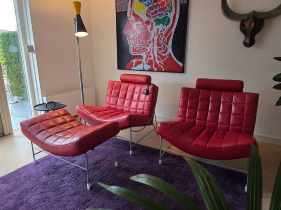 Leolux Volare 2x fauteuil met hoofdsteun en 1 x hocker / rood leder SENSO FERRARI