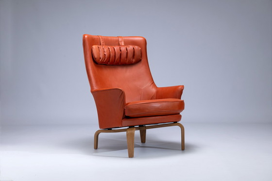 Arne Norell "Pilot" leren fauteuil Ontworpen door Arne Norell en geproduceerd bij Norell möbel AB in 1960. Poten in beukenhout, met volledig nieuwe leren bekleding B 78 D 80 H 100 Zithoogte: 44 cm