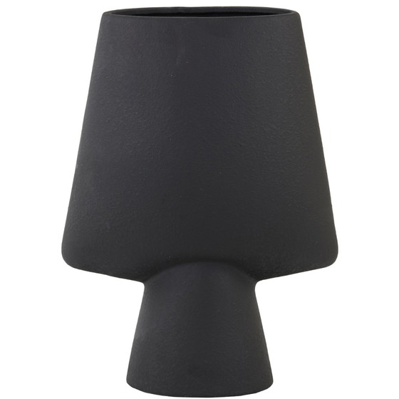 Deze keramieken vaas valt op door zijn sculpturale vorm en matte zwarte afwerking, wat zorgt voor een stoere en stijlvolle look. De krachtige, grafische lijnen maken dit stuk tot een echte blikvanger in elk interieur. Perfect als decoratief object, met of zonder bloemen, en goed te combineren met andere accessoires voor een stijlvol geheel.