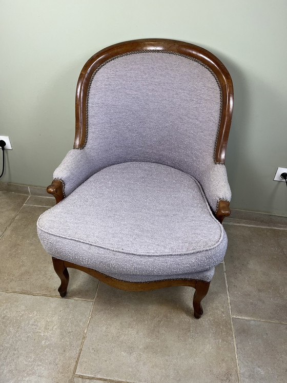 Prachtige fauteuil Louis Philippe, omhullende, comfortabele, hermetische afwerking.