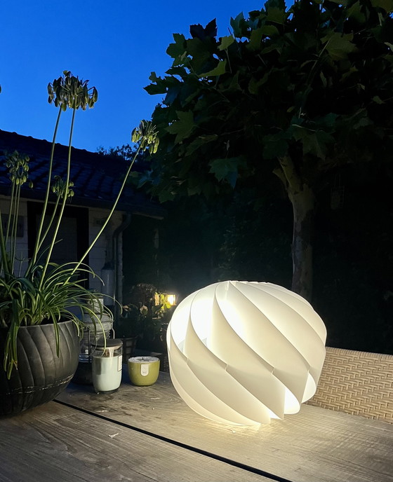 Een eyecatcher op je terras. Lamp is zo goed als nieuw, was show model voor beurs.